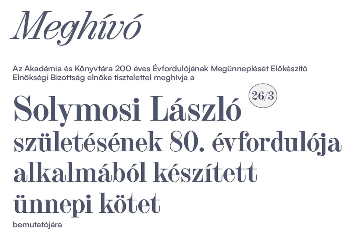 2026. március 25-én a késő délutáni órákban rendezik meg a Solymosi László születésének 80. évfordulója alkalmából készített kötet bemutatóját. Az esemény helyszíne a Magyar Tudományos Akadémia Díszterme lesz.